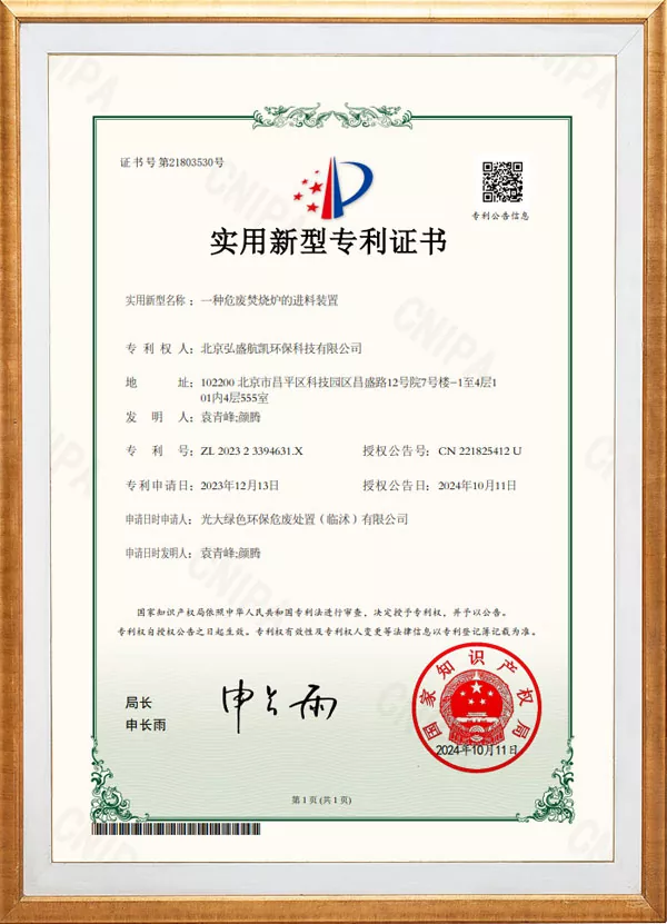ఈ సంస్థ ఇంటెన్సివ్ రీసెర్చ్ అండ్ డెవలప్మెంట్ కోసం 9 సంవత్సరాలు మరియు 50 మిలియన్లకు పైగా యువాన్లను గడిపింది, మరియు ఇప్పుడు 5 ఆవిష్కరణలు మరియు 15 యుటిలిటీ మరియు ప్రదర్శన పేటెంట్లు ఉన్నాయి, వీటిలో చాలా అంతర్జాతీయ సాంకేతిక అడ్డంకులను అధిగమించాయి. అభివృద్ధి చెందిన దేశీయ వ్యర్థాల కోసం అత్యంత సమర్థవంతమైన మరియు శుభ్రమైన భస్మీకరణ సాంకేతికత వ్యర్థ భస్మీకరణాల ఆపరేషన్లో ఉత్పన్నమయ్యే అనేక ప్రక్రియ సమస్యలను పూర్తిగా పరిష్కరించింది, మరియు మా కంపెనీ బాయిలర్ పరివర్తనలో అనేక పేటెంట్ టెక్నాలజీలను కలిగి ఉంది, భవిష్యత్తులో వ్యర్థాల చికిత్సకు కొత్త మార్గాన్ని సృష్టిస్తుంది.